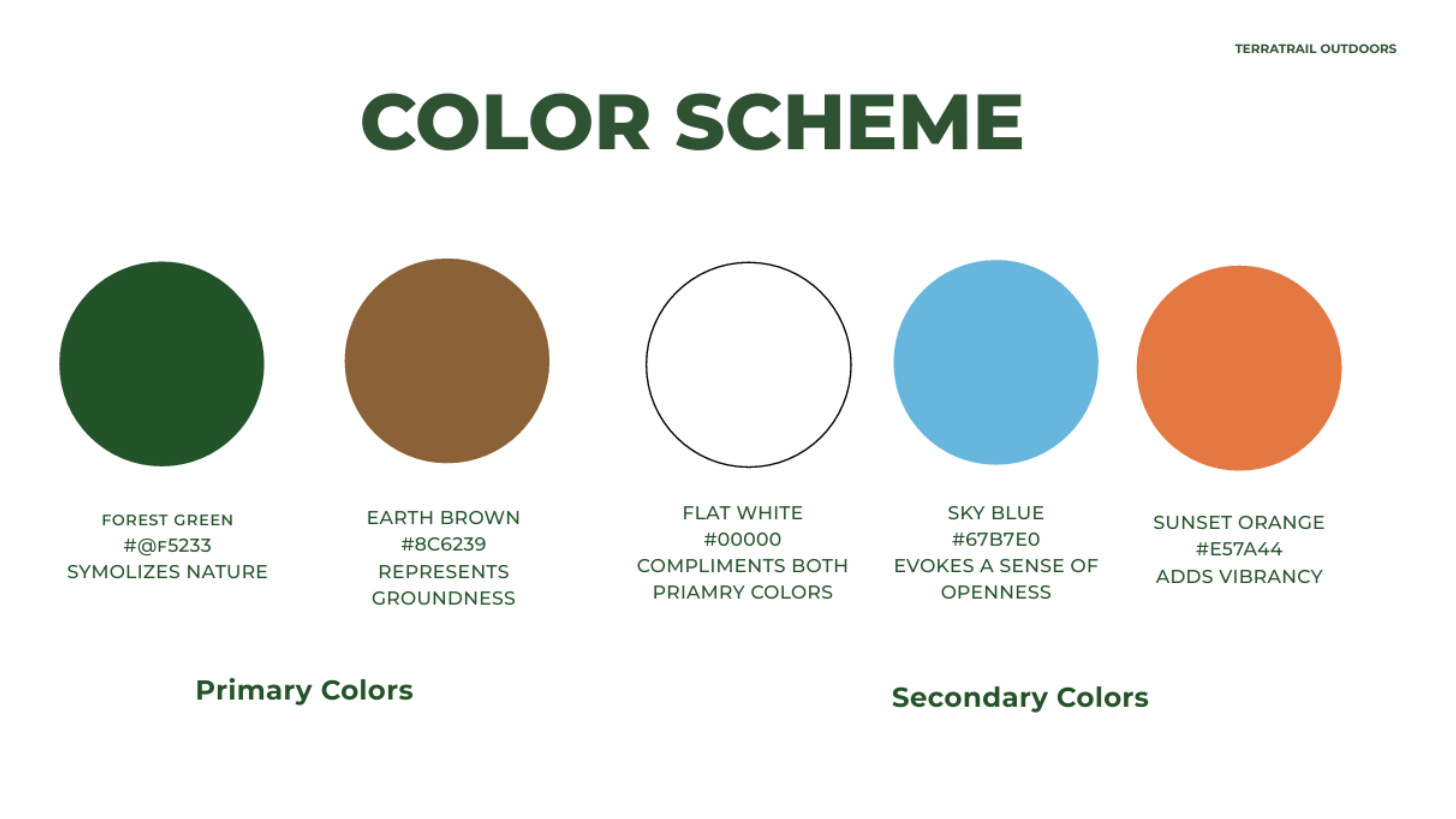 The Brandbook and Marketing Materials project was developed to define and communicate a clear visual identity for Terra Trail Outdoors. It includes key brand elements such as color schemes, iconography, logo usage guidelines, and supporting visuals that reflect an outdoor and adventure-driven aesthetic.