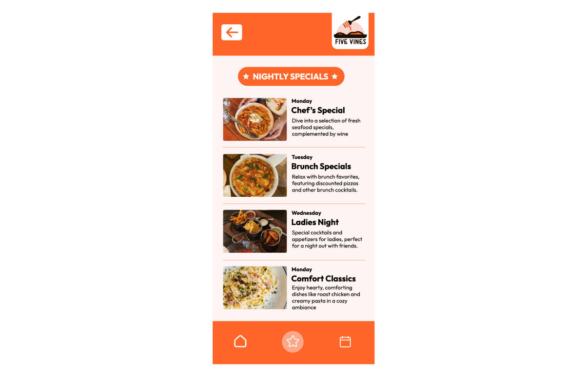 Another challenge was ensuring smooth user interaction across different features such as browsing, viewing specials, and completing reservations. Careful attention was required to maintain clarity, responsiveness, and ease of use across all screens.